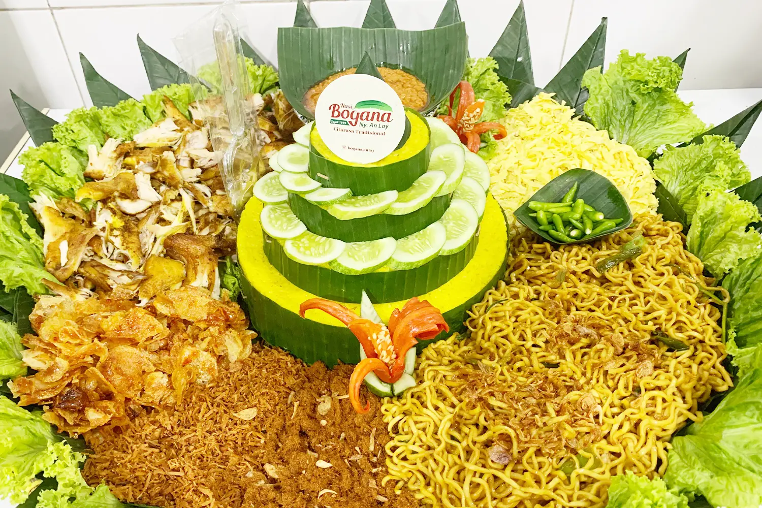 Di “Nasi Bogana Ny An Lay”, kami tidak hanya menghadirkan kelezatan nasi bogana, tetapi juga menyajikan tumpeng yang istimewa sebagai salah satu spesialisasi kami. Tumpeng merupakan simbol keberkahan dan keharmonisan dalam budaya Indonesia, dan kami dengan bangga menyajikannya dengan berbagai pilihan hidangan yang lezat dan menggugah selera untuk acara terbaik Anda, seperti syukuran, ucapan terima kasih, atau bahkan sebagai hadiah ulang tahun!